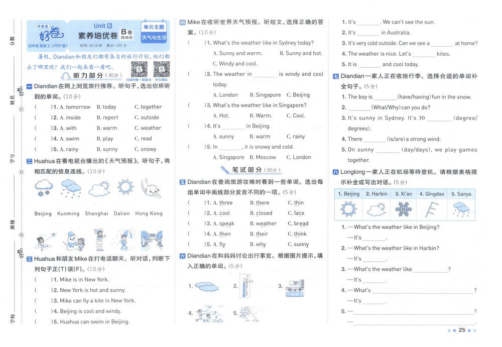 新教材人教PEP版四年级上册英语unit5测试卷二video