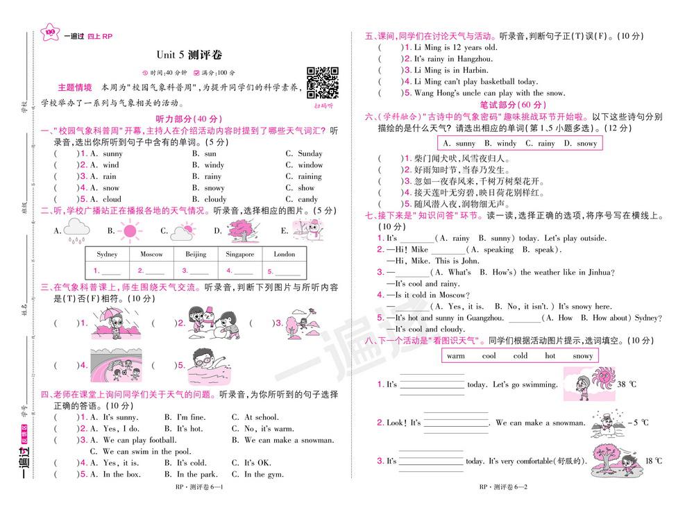 新教材人教PEP版四年级上册英语unit5测试卷六video