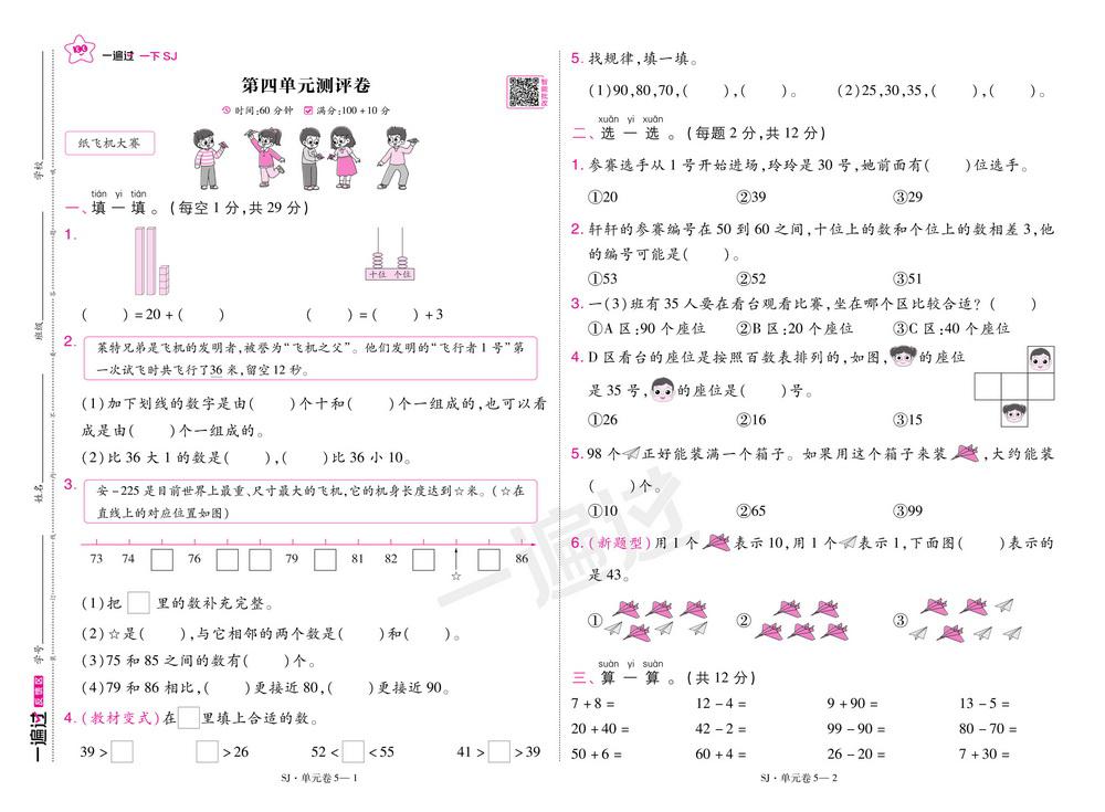 新教材苏教版一年级下册数学第四单元测试卷五video