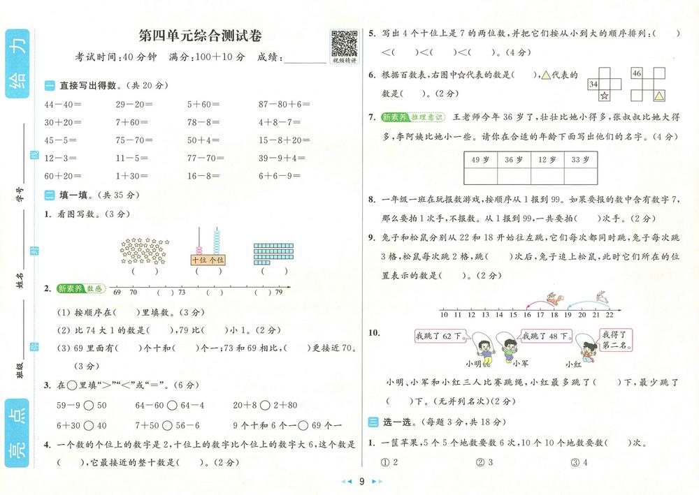 新教材苏教版一年级下册数学第四单元测试卷九video