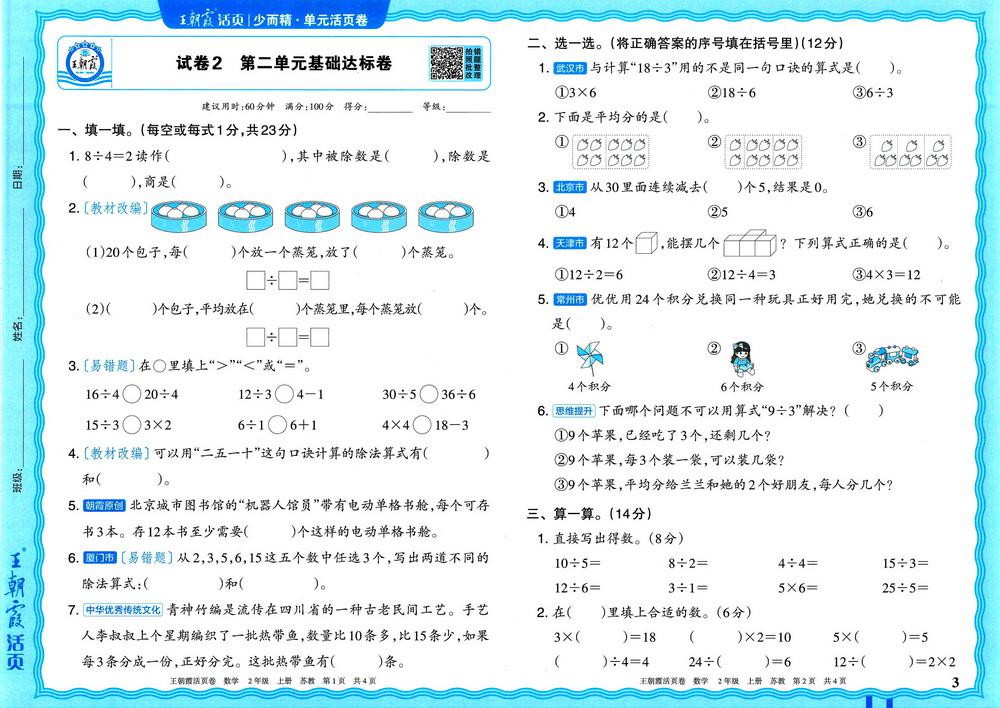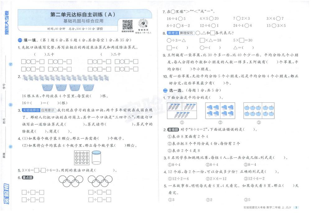 新教材苏教版二年级数学上学期第二单元测试卷十八video