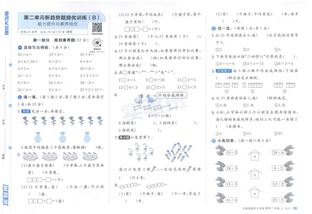 新教材苏教版二年级数学上学期第二单元测试卷二十video