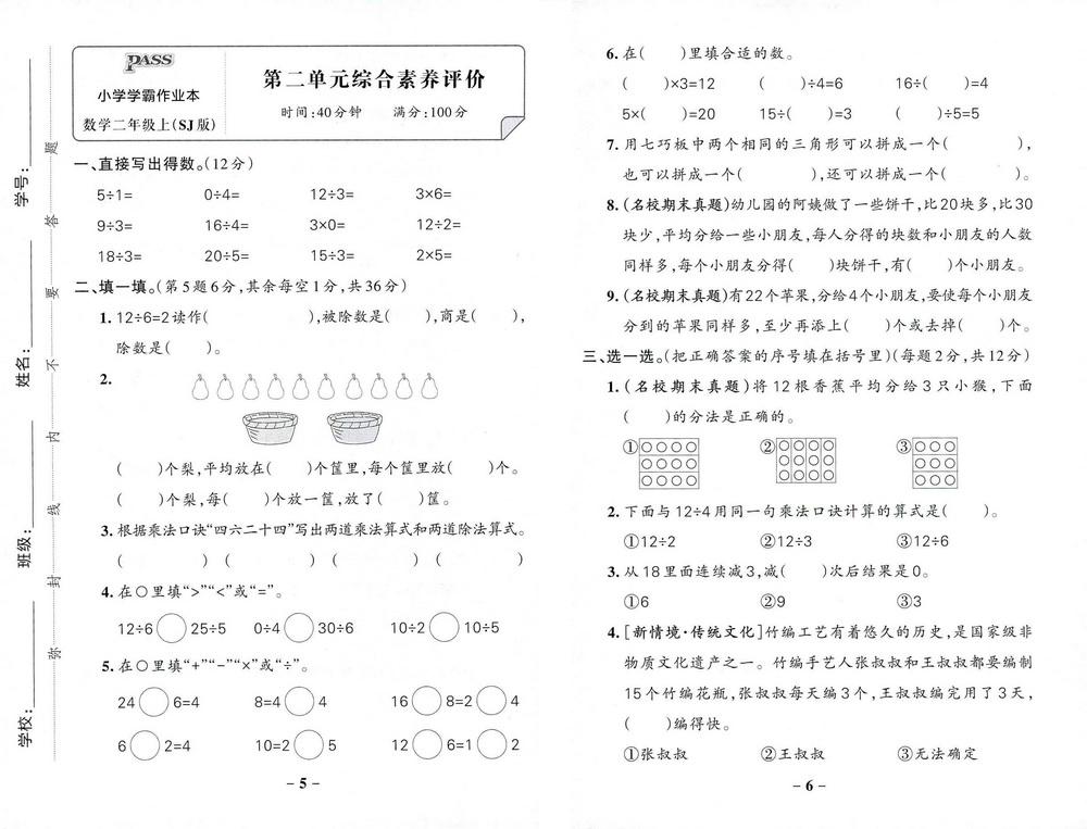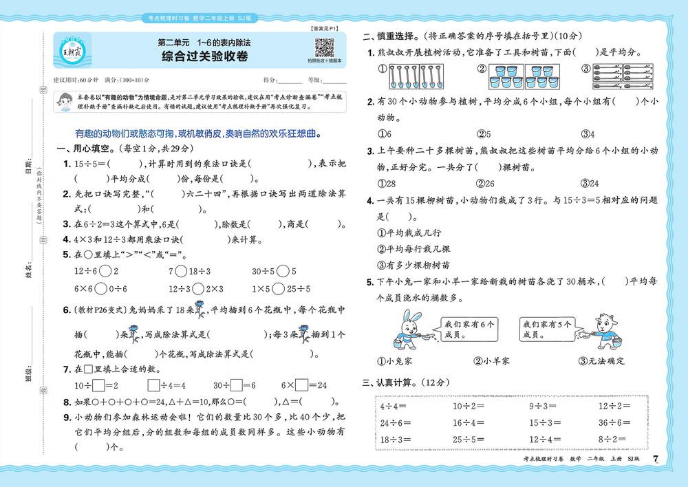 新教材苏教版二年级数学上学期第二单元测试卷六video