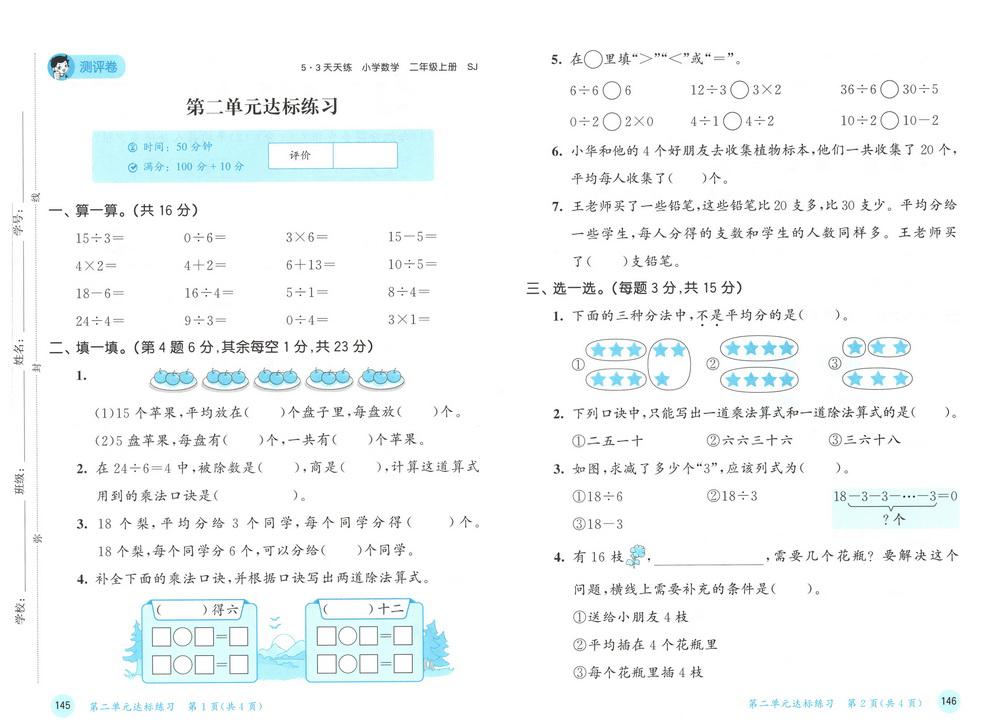 新教材苏教版二年级数学上学期第二单元测试卷十video