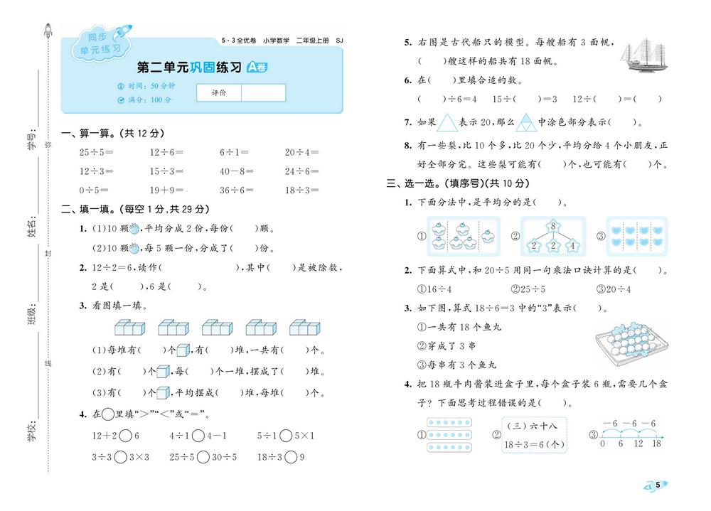新教材苏教版二年级数学上学期第二单元测试卷五video