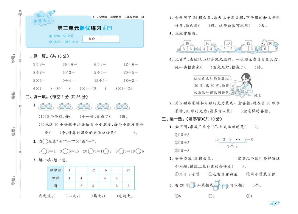 新教材苏教版二年级数学上学期第二单元测试卷七video