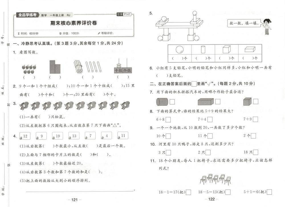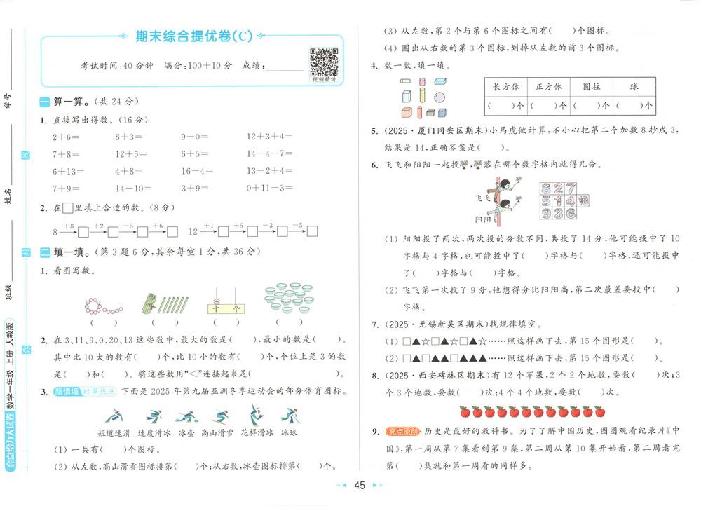 新教材人教版一年级上册数学期末测试卷五十八video