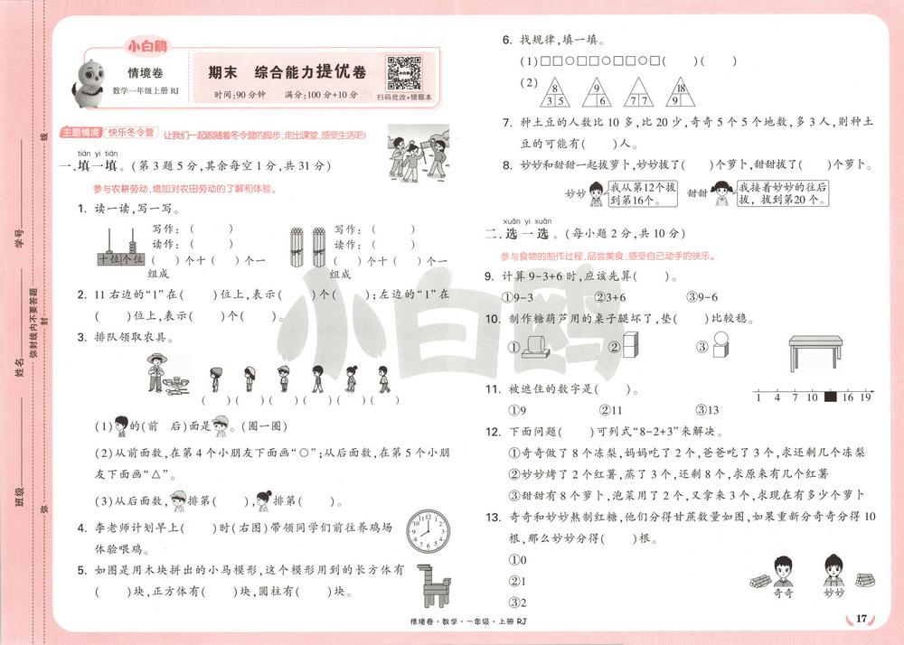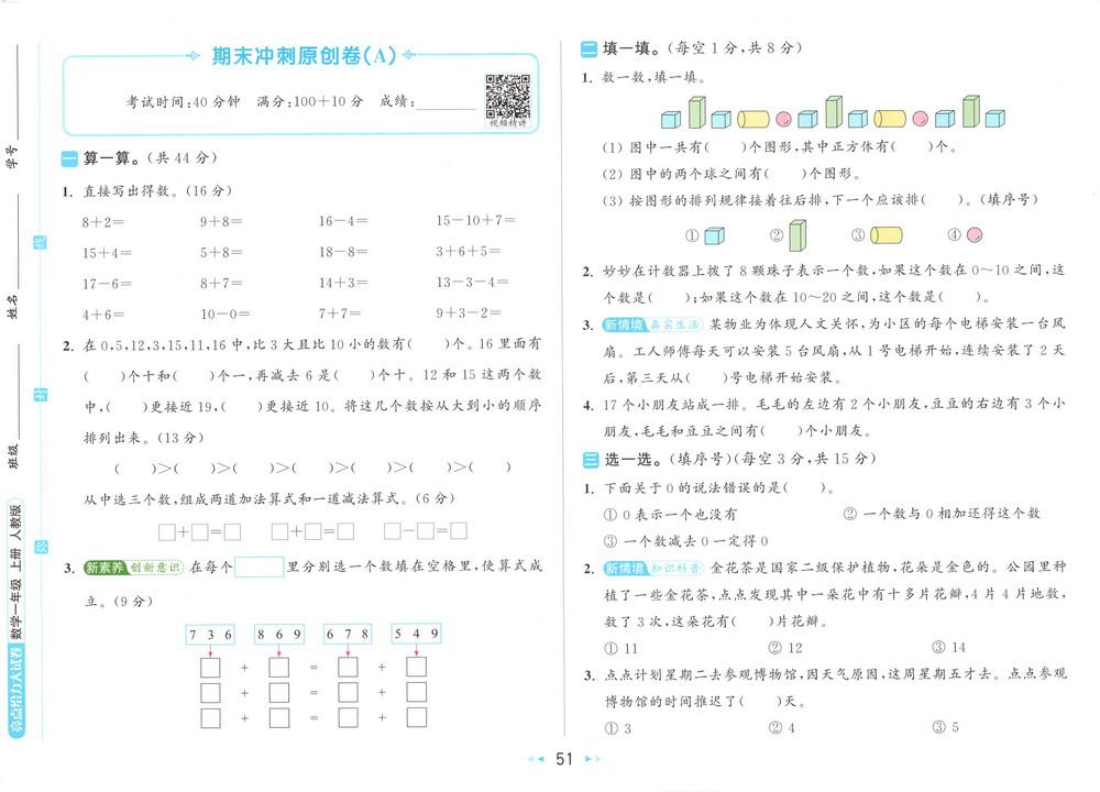 新教材人教版一年级上册数学期末测试卷五十一video