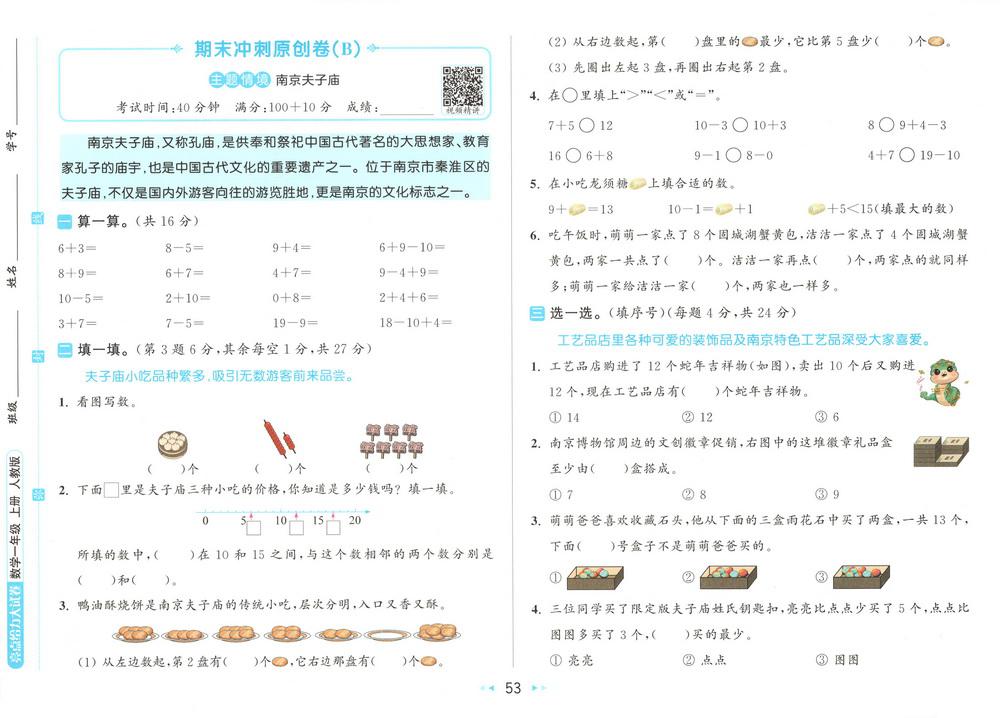 新教材人教版一年级上册数学期末测试卷五十三video