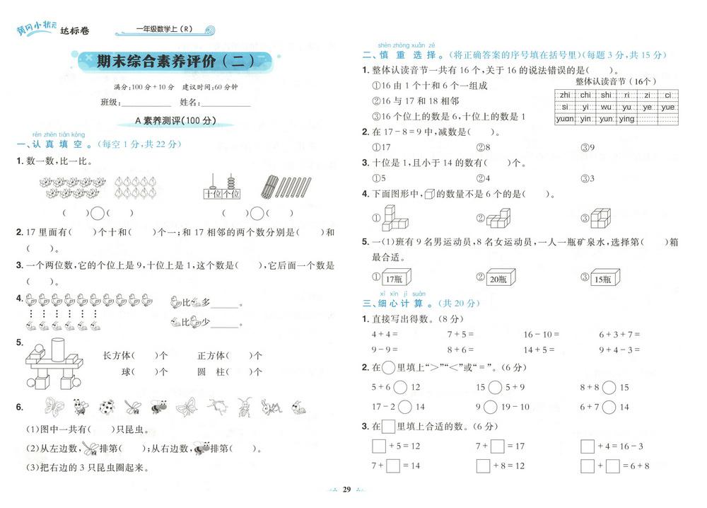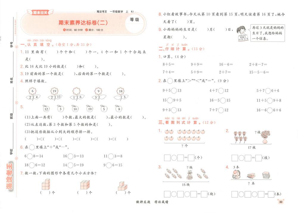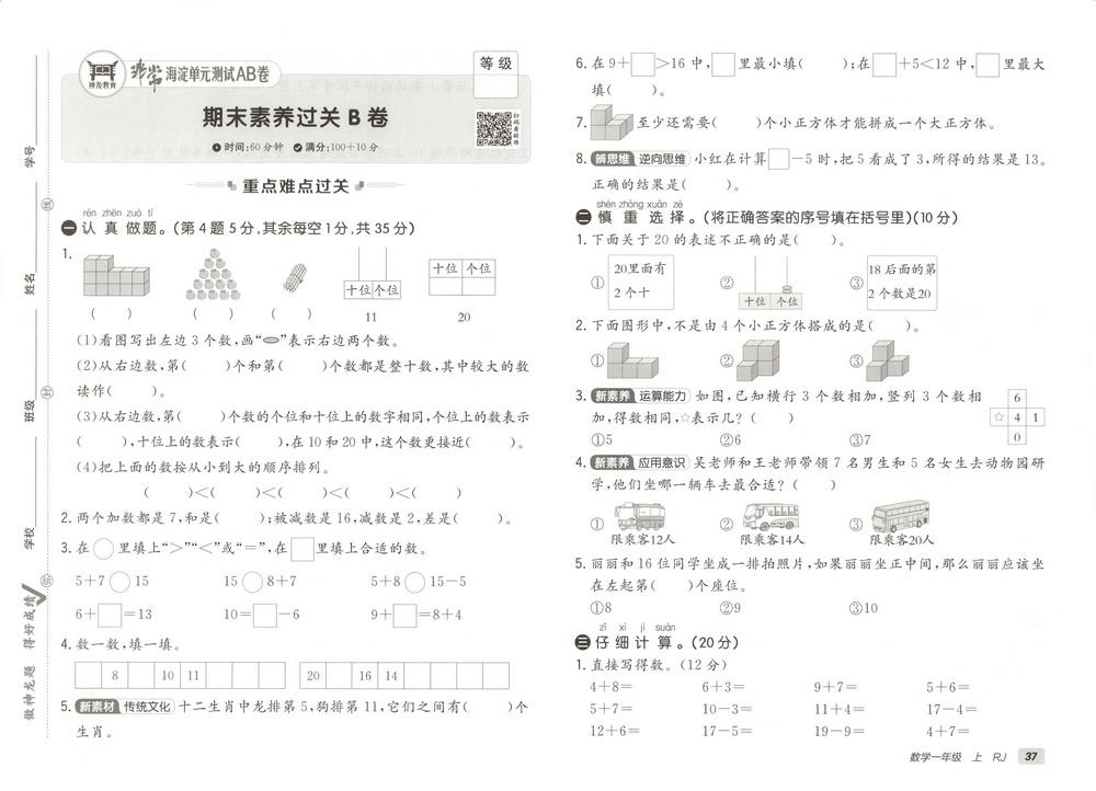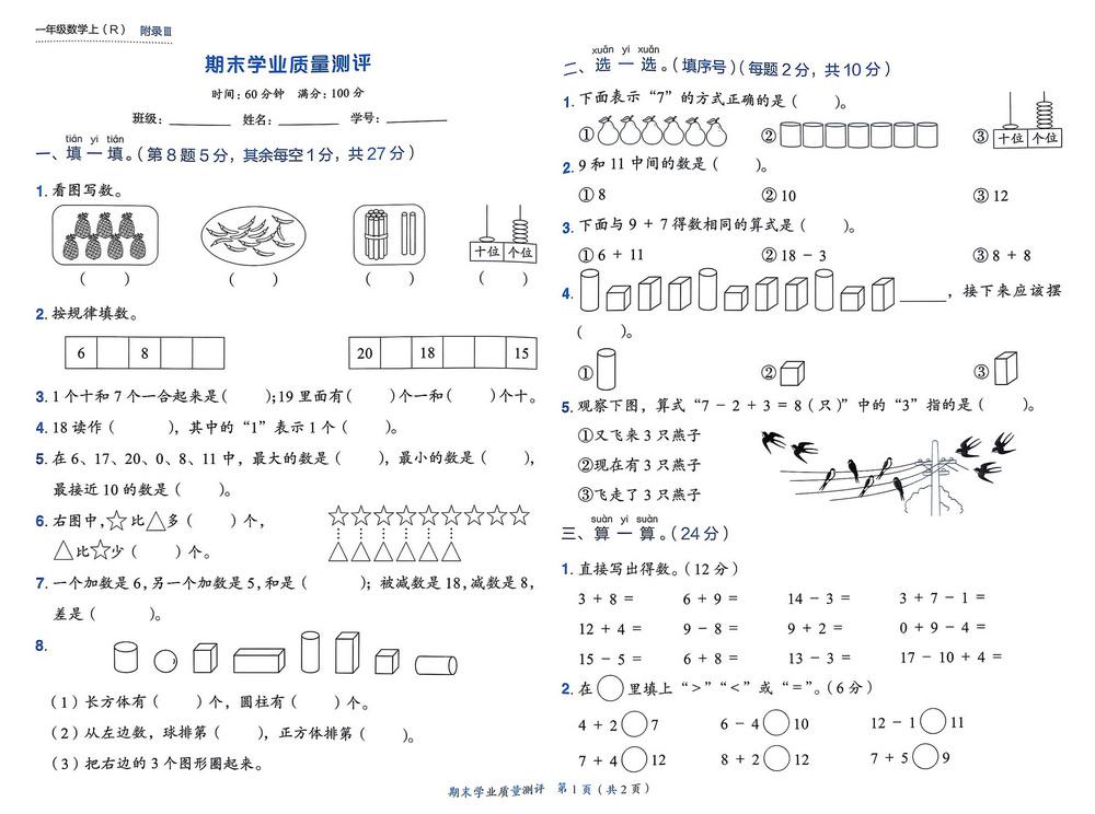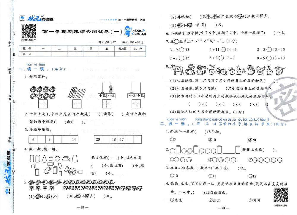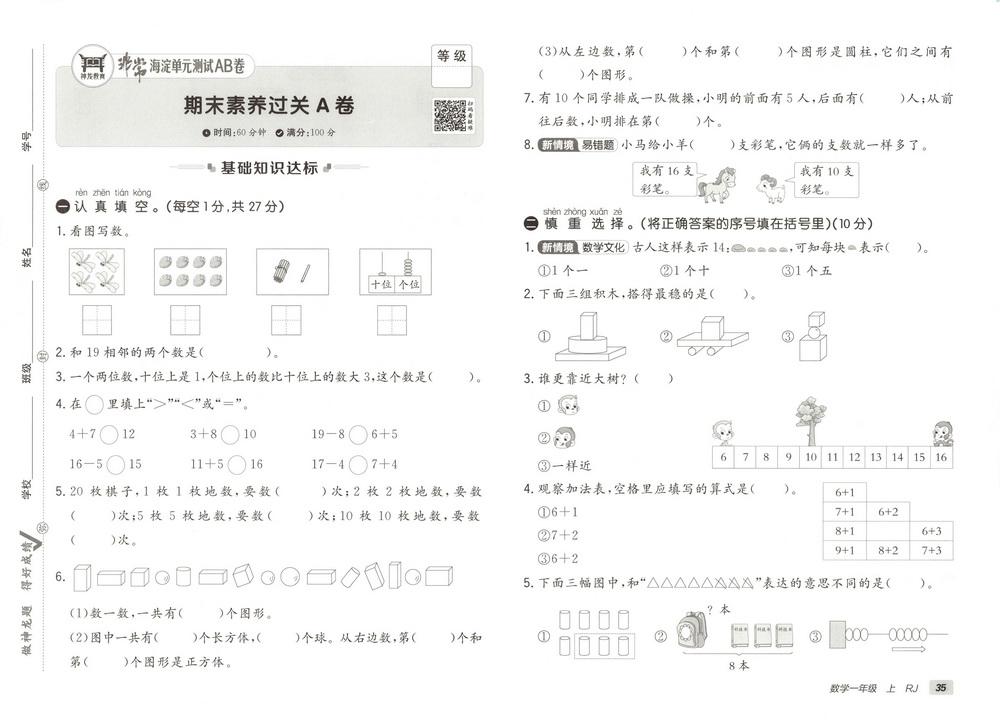 新教材人教版一年级上册数学期末测试卷六十video