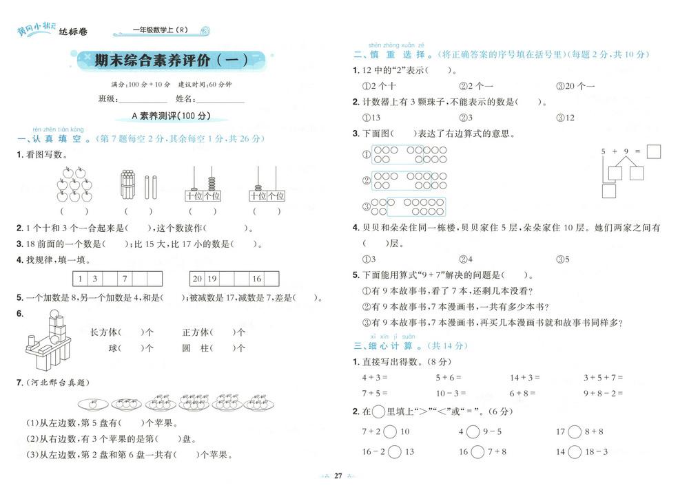一年级 - 数学上试卷大全