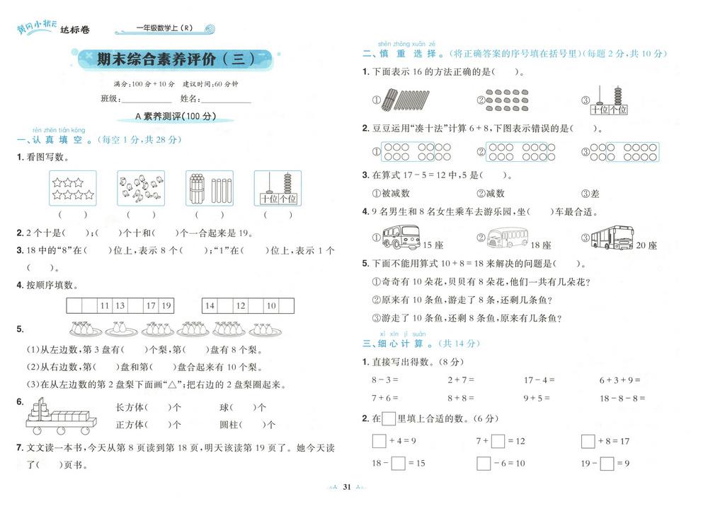 新教材人教版一年级上册数学期末测试卷六十八video