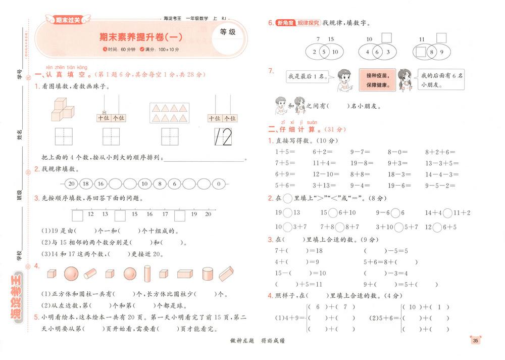 新教材人教版一年级上册数学期末测试卷六十五video