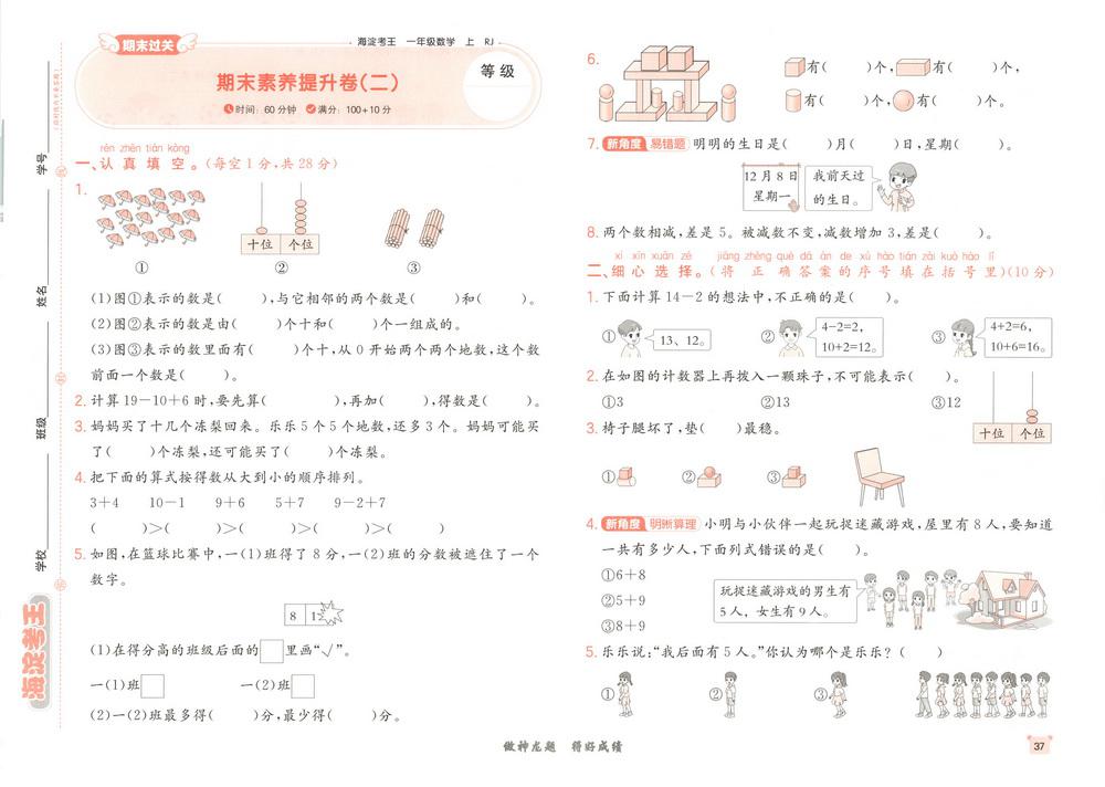 新教材人教版一年级上册数学期末测试卷六十四video