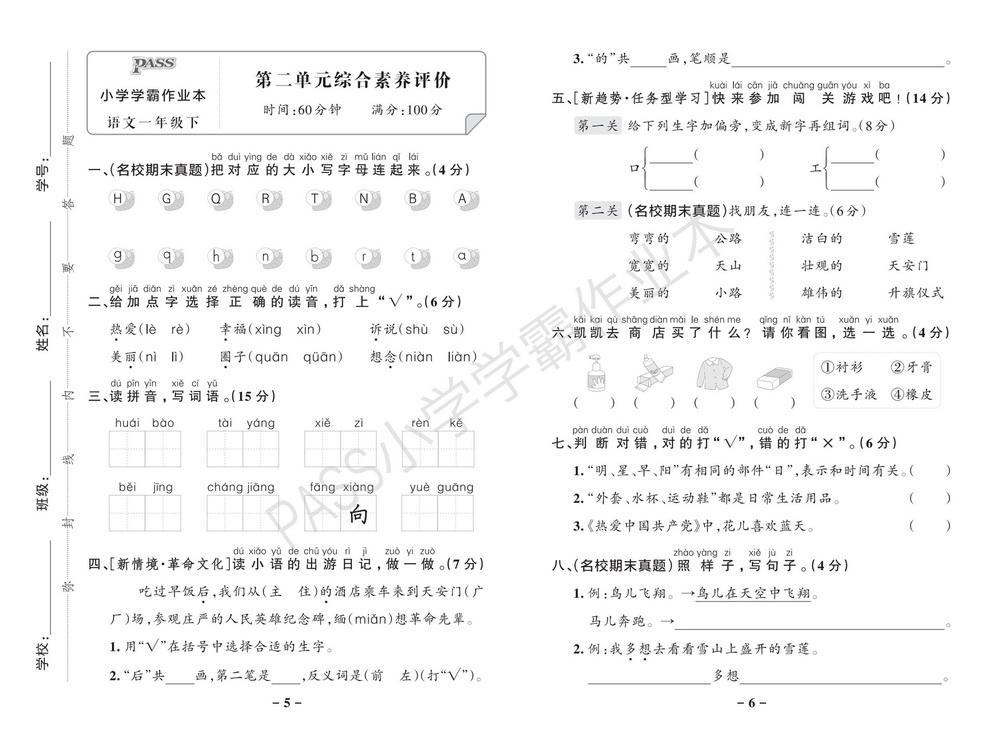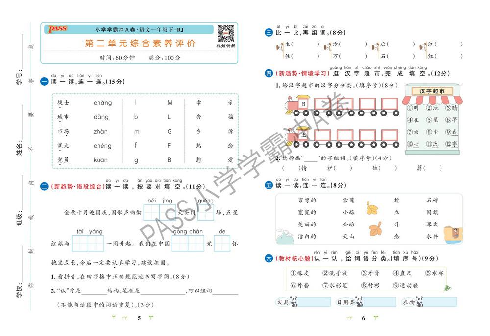 新教材人教版一年级下册语文第一单元测试卷十七video