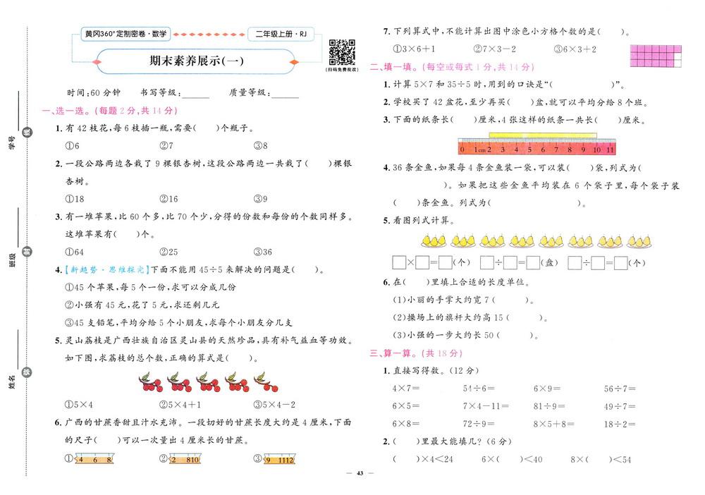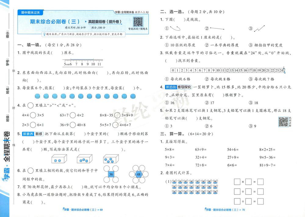 新教材人教版二年级数学上册期末测试卷一百零六video