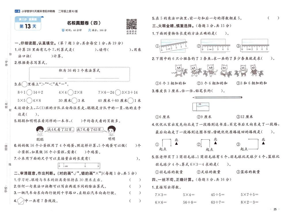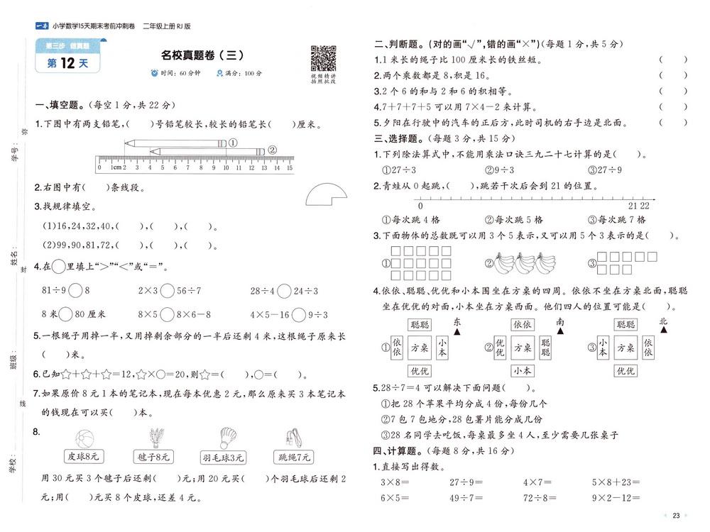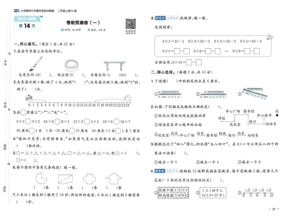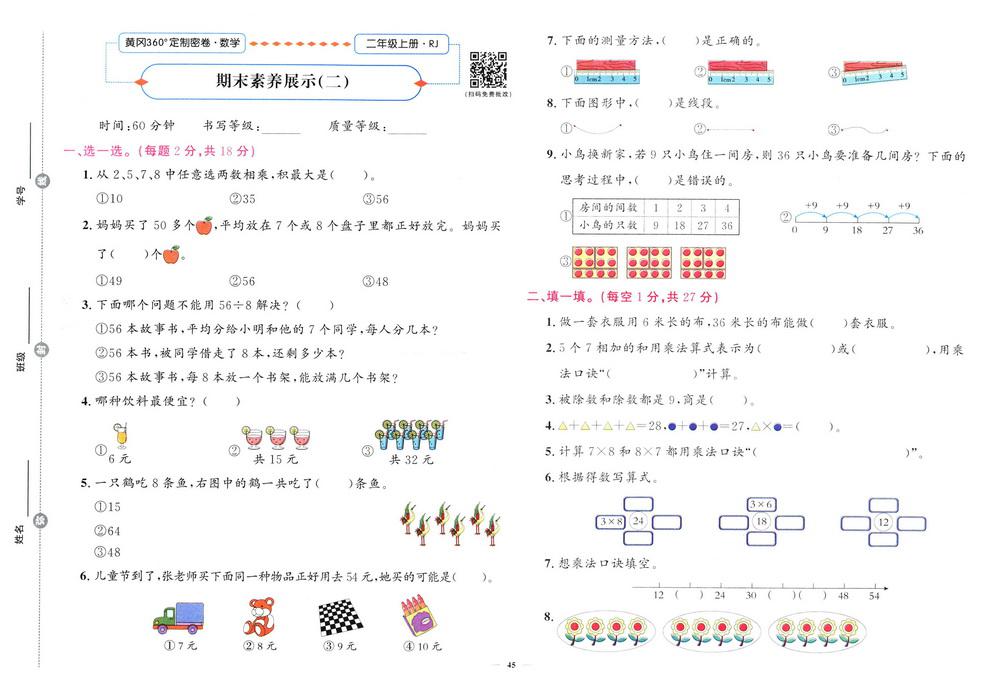 新教材人教版二年级数学上册期末测试卷一百一十四video