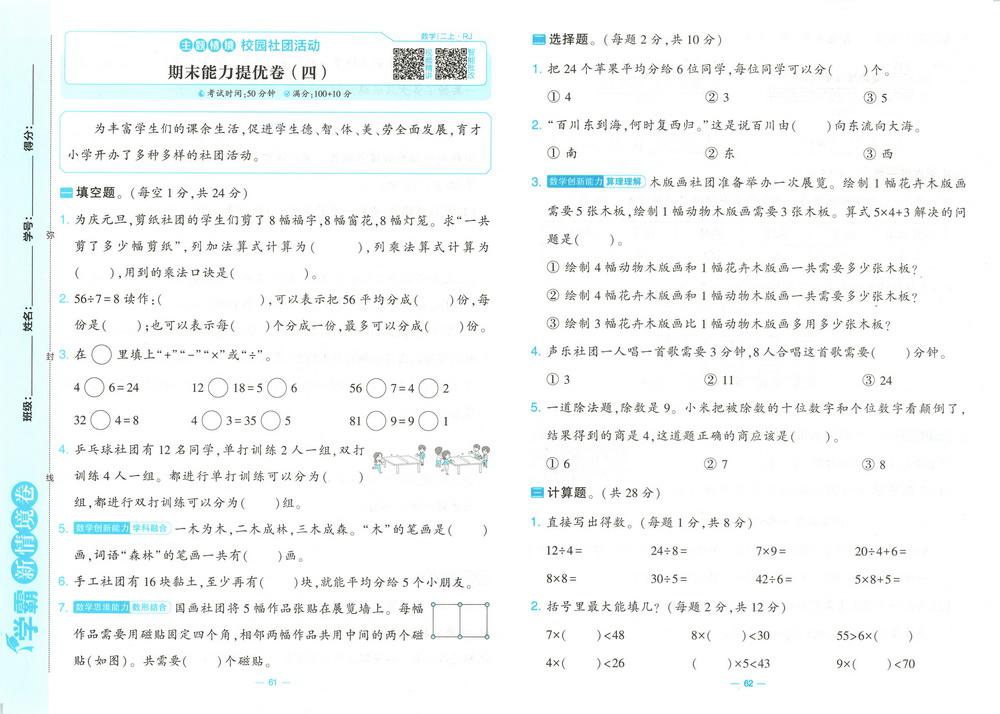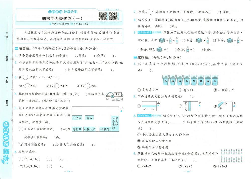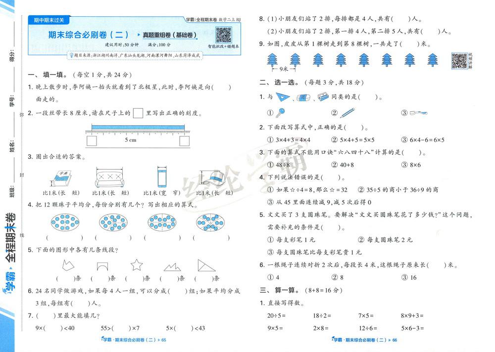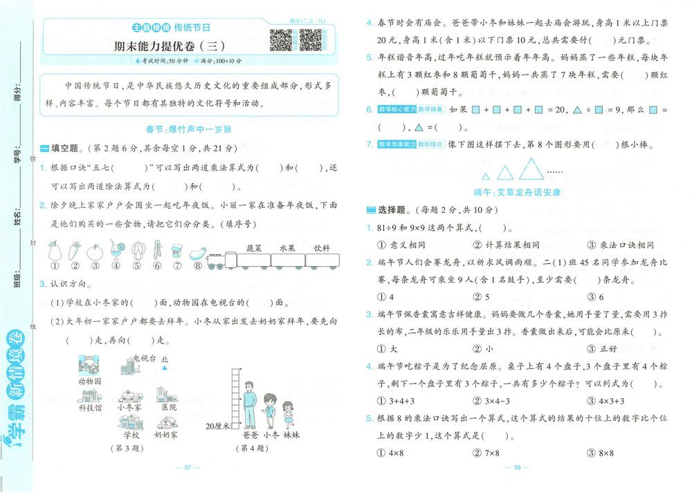 新教材人教版二年级数学上册期末测试卷一百零九video