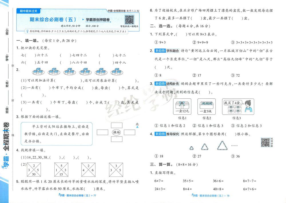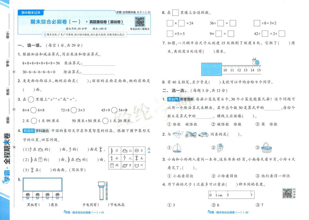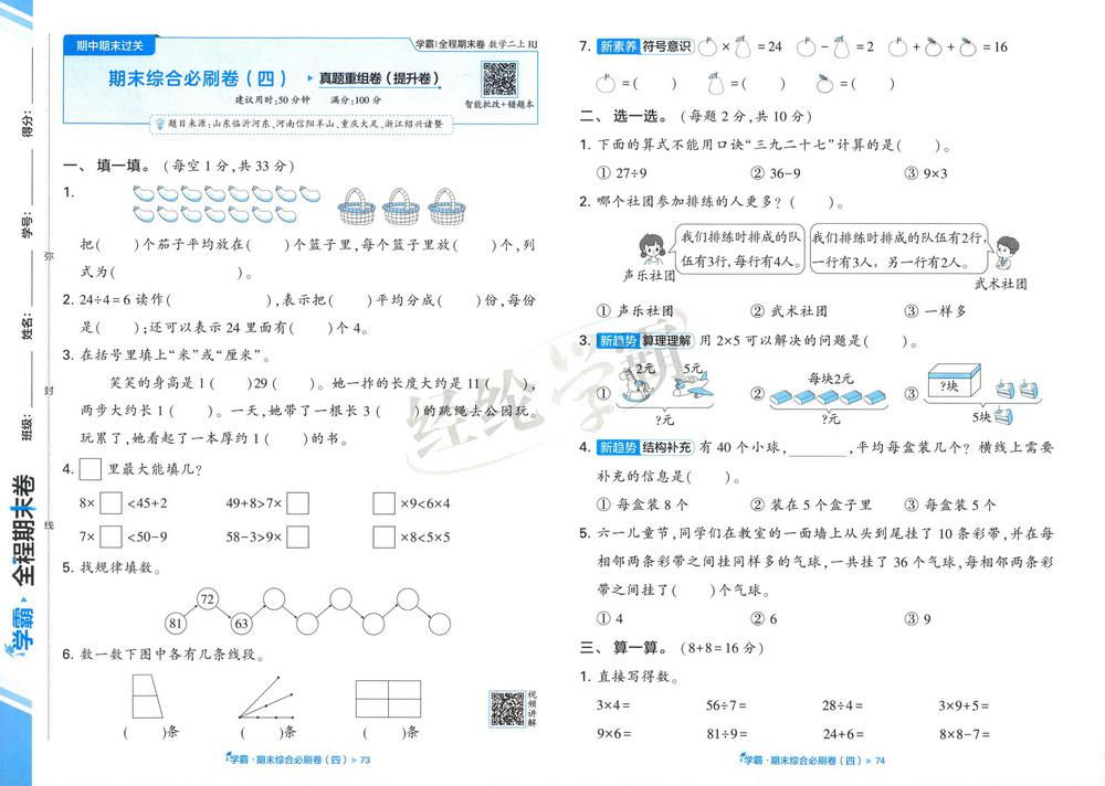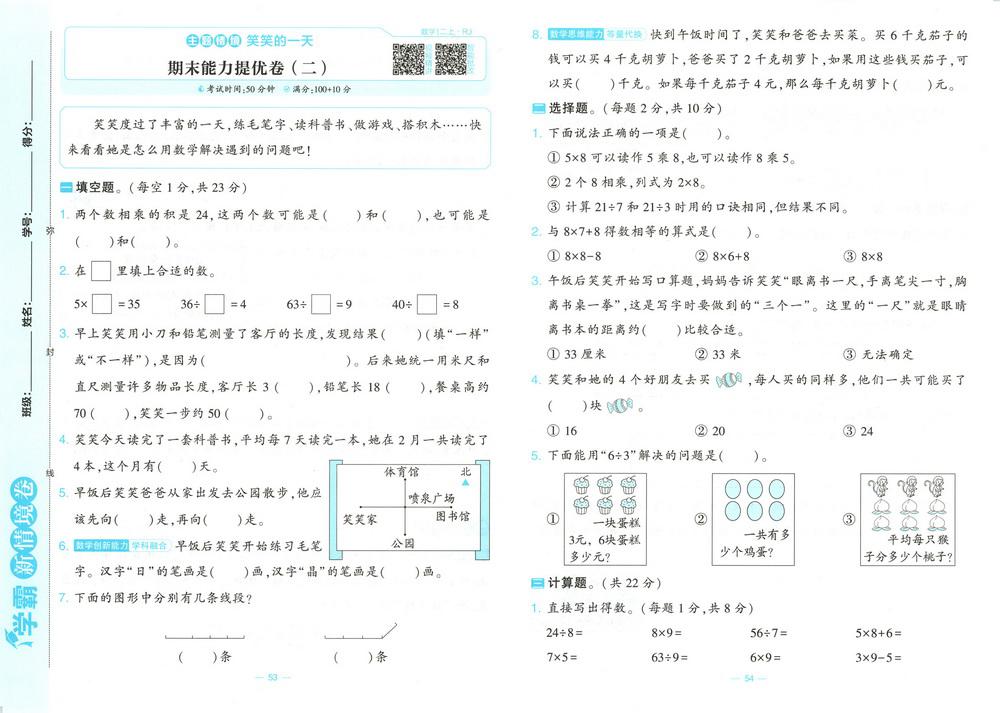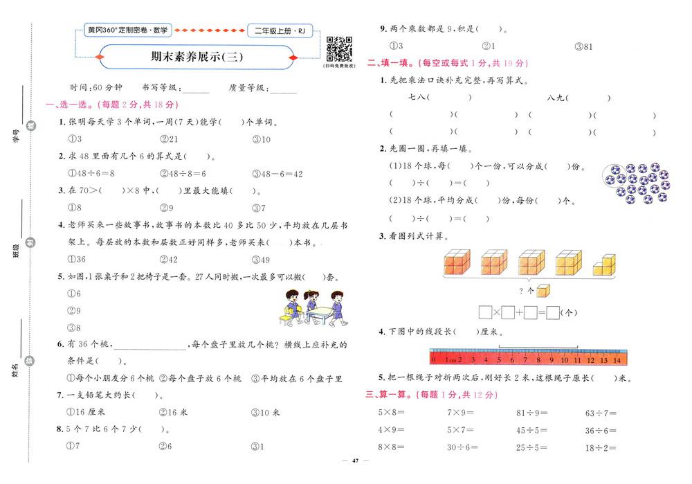 新教材人教版二年级数学上册期末测试卷一百零九video
