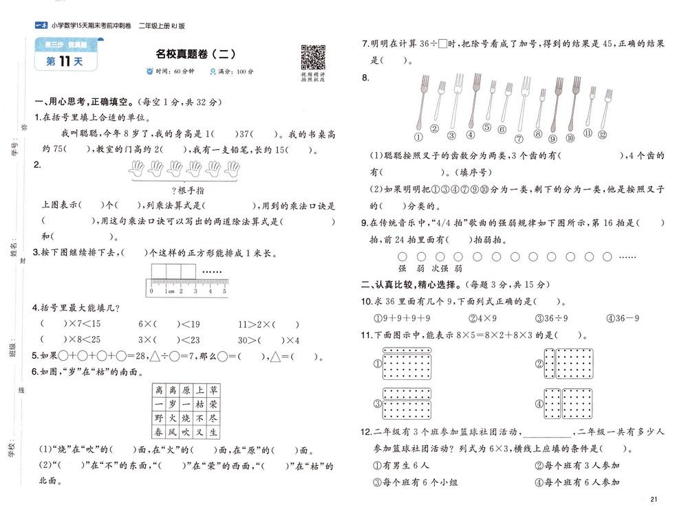 新教材人教版二年级数学上册期末测试卷一百一十video
