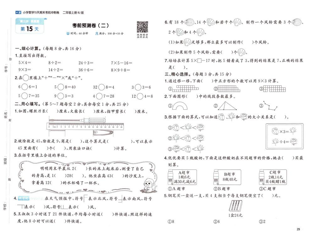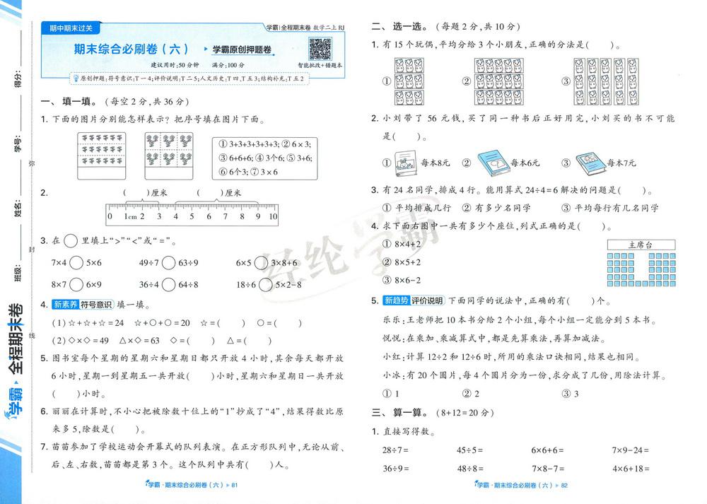 新教材人教版二年级数学上册期末测试卷一百零七video