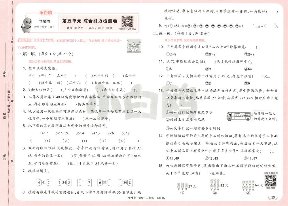 新教材人教版二年级数学上册第五单元测试卷二十三