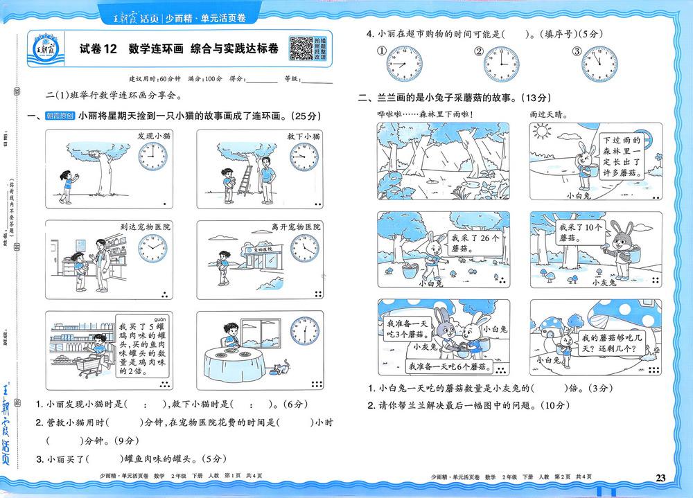 新教材人教版二年级数学下册《数学连环画》测试卷一