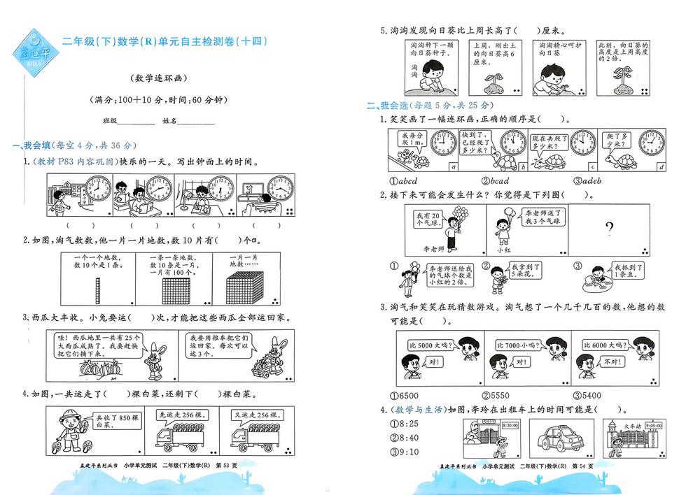 新教材人教版二年级数学下册《数学连环画》测试卷三