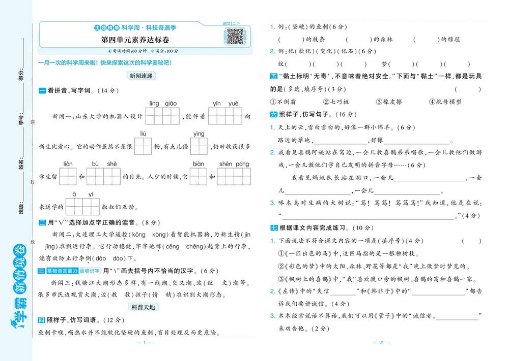 新教材人教版二年级语文下学期第四单元测试卷十