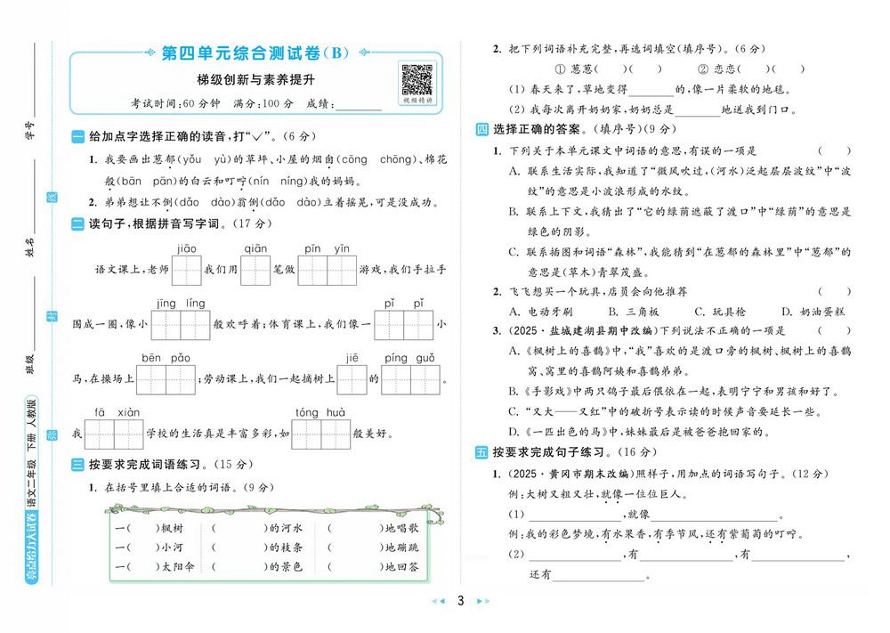 新教材人教版二年级语文下学期第四单元测试卷十四