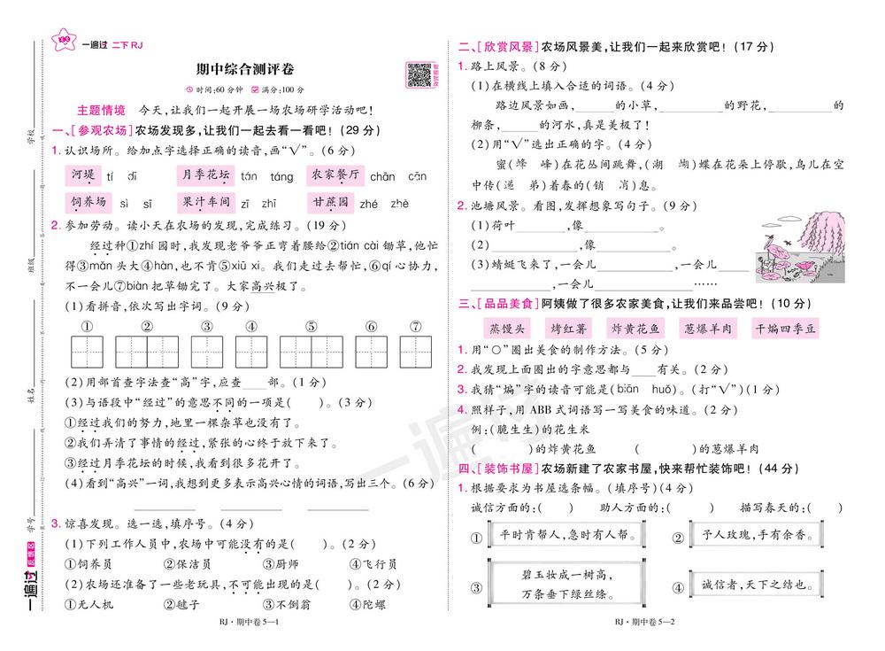 新教材人教版二年级语文下学期期中测试卷四