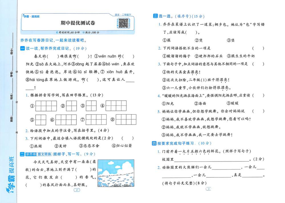 新教材人教版二年级语文下学期期中测试卷二十一