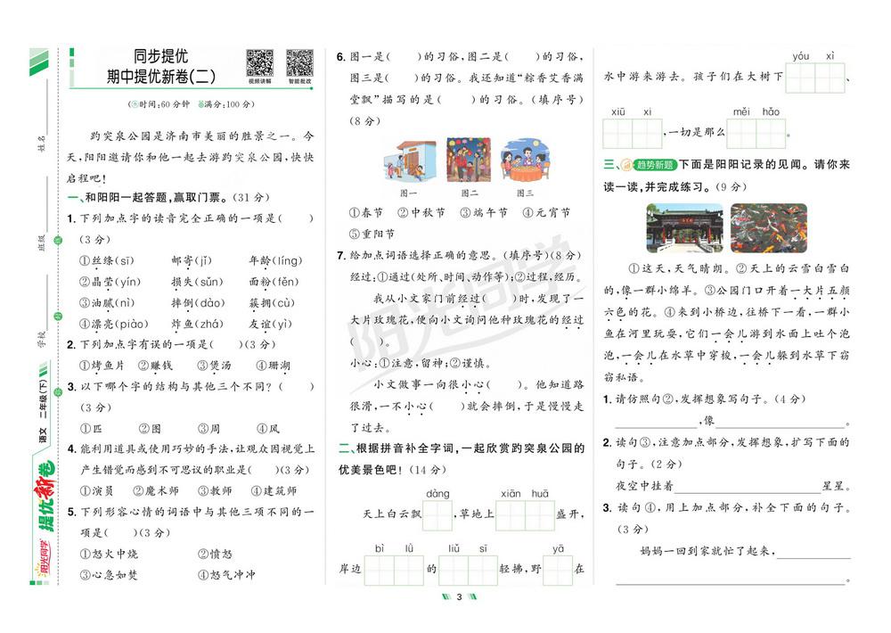 新教材人教版二年级语文下学期期中测试卷四十二