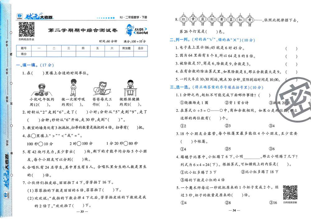 二年级 - 数学下试卷