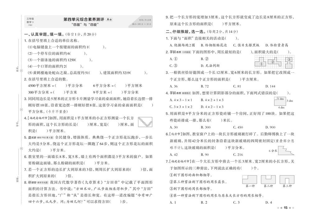 新教材人教版三年级下册数学第四单元测试卷二