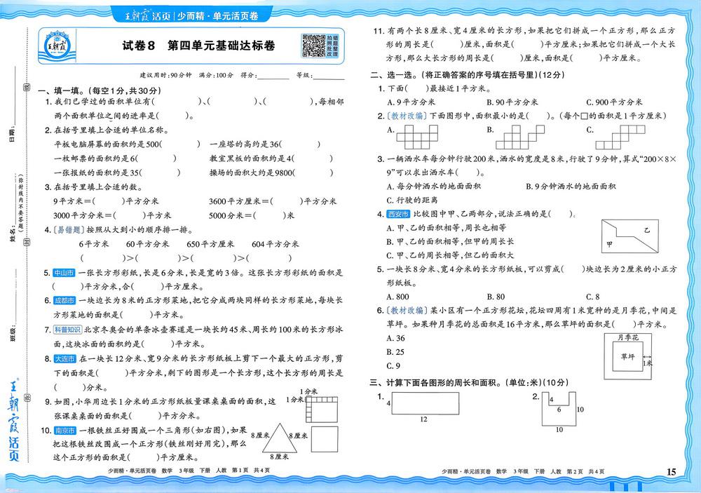 三年级 - 数学下试卷