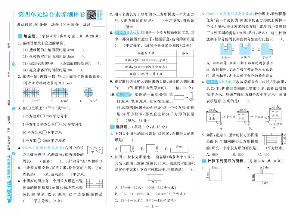 三年级 - 数学下试卷