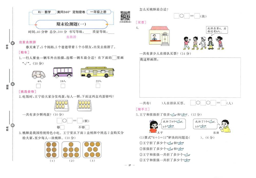 新教材人教版一年级上册数学期末测试卷九十七