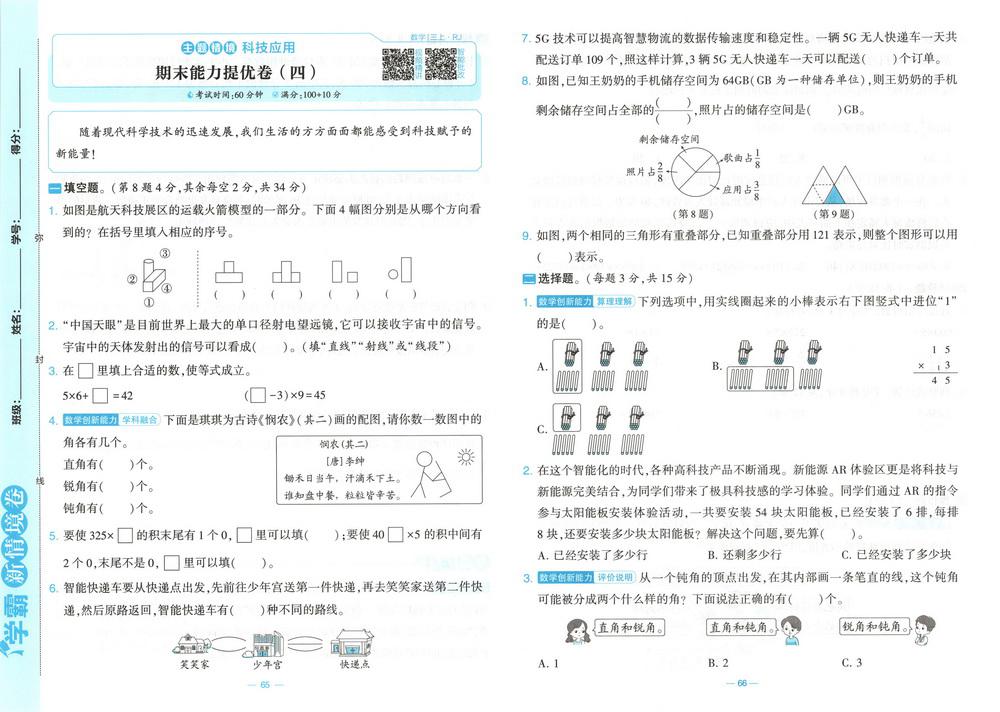新教材人教版三年级数学上册期末测试卷九十六