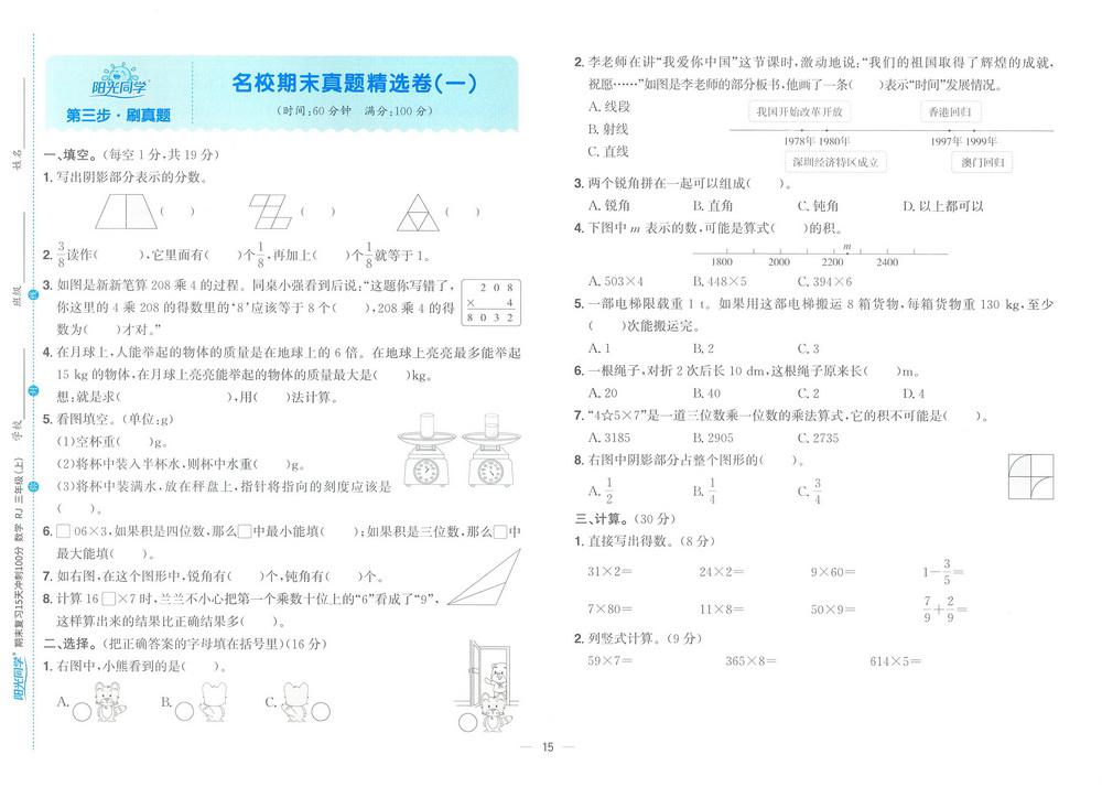 新教材人教版三年级数学上册期末测试卷一百零九