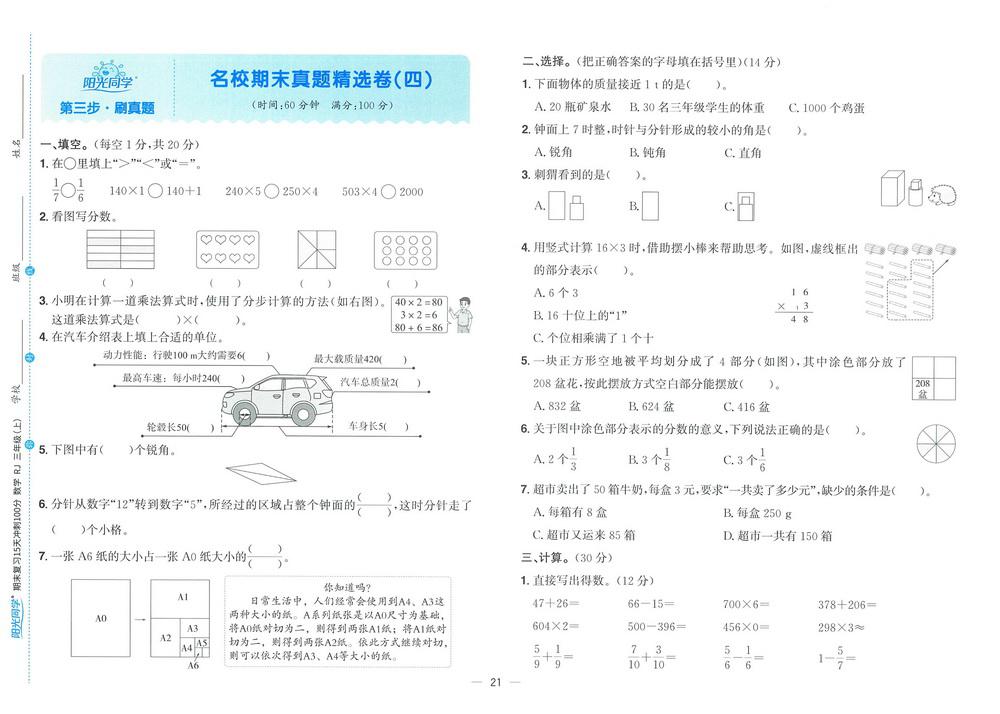 新教材人教版三年级数学上册期末测试卷一百一十二