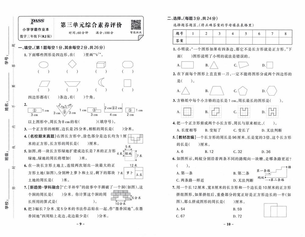新教材人教版三年级下册数学第三单元测试卷十六