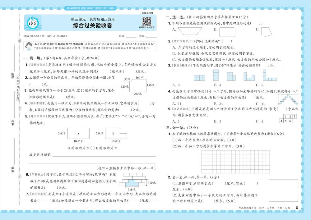 新教材人教版三年级下册数学第三单元测试卷十九