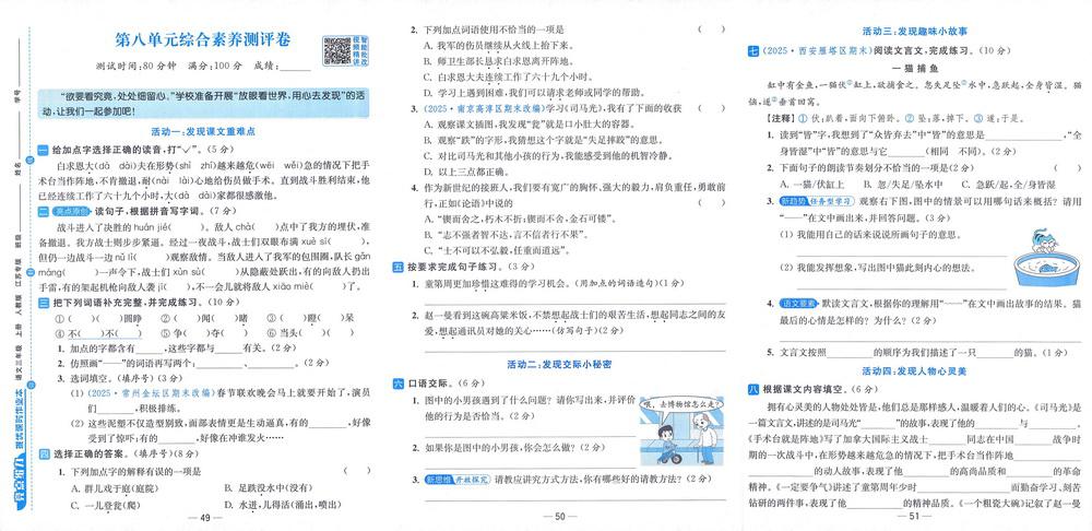新教材人教版三年级上册语文第八单元测试卷二十五video