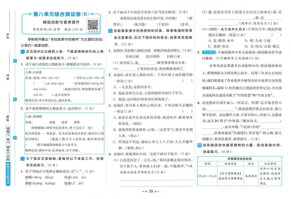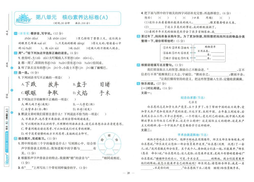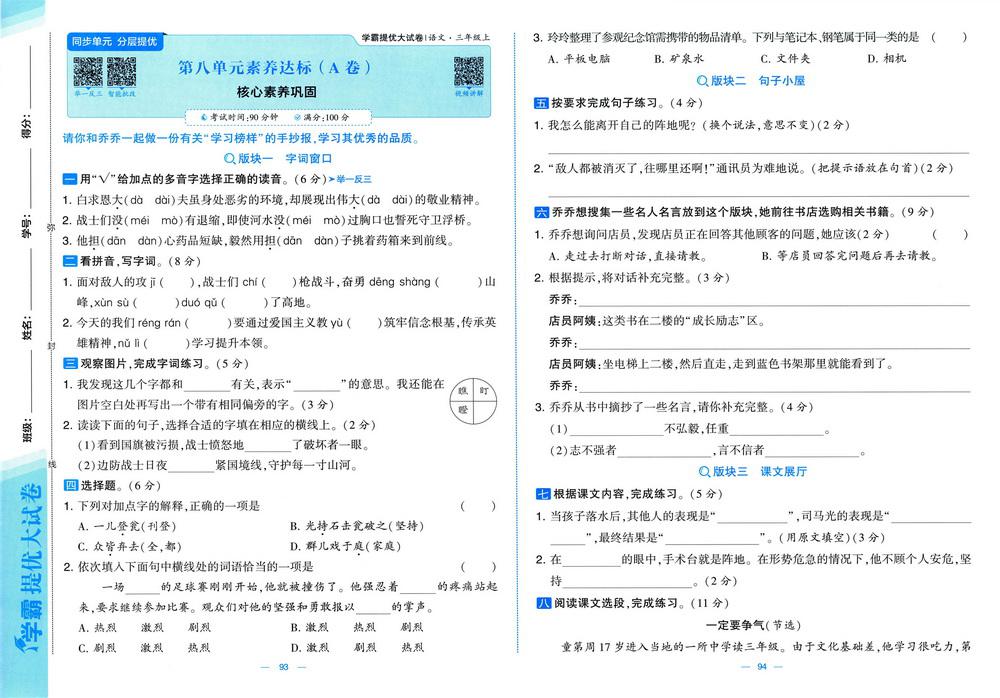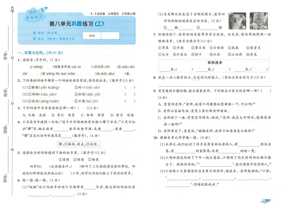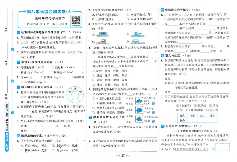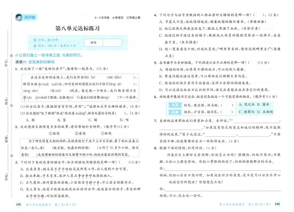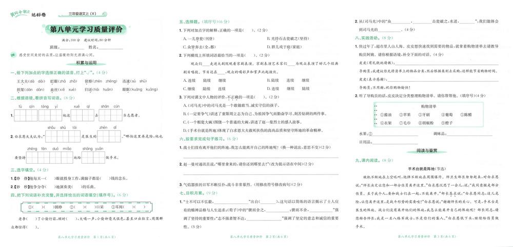 新教材人教版三年级上册语文第八单元测试卷二十四video