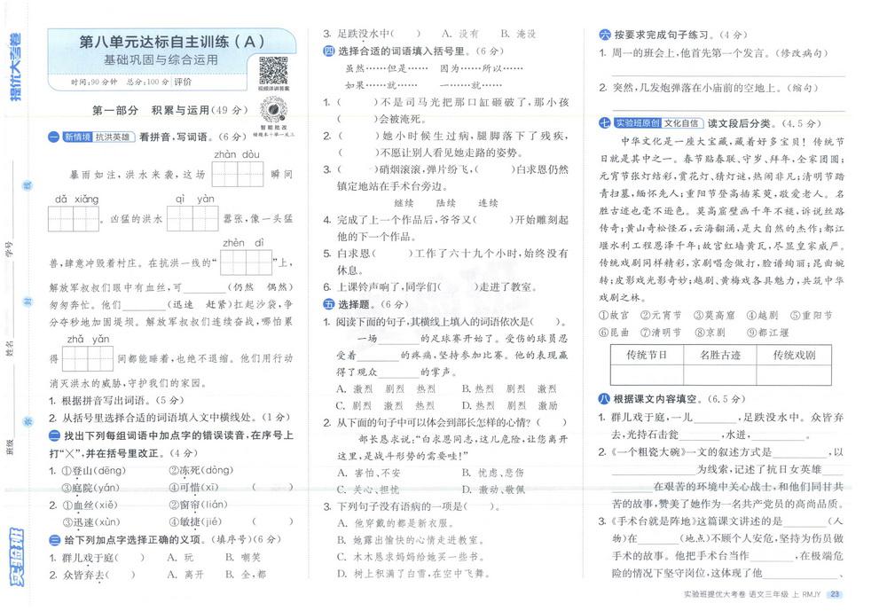 新教材人教版三年级上册语文第八单元测试卷二十三video