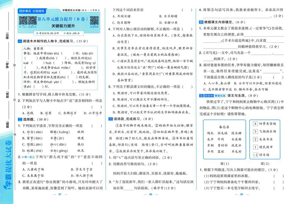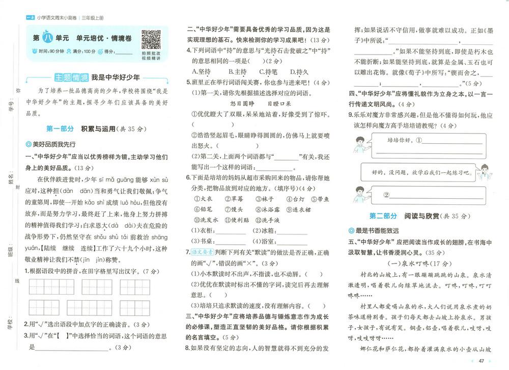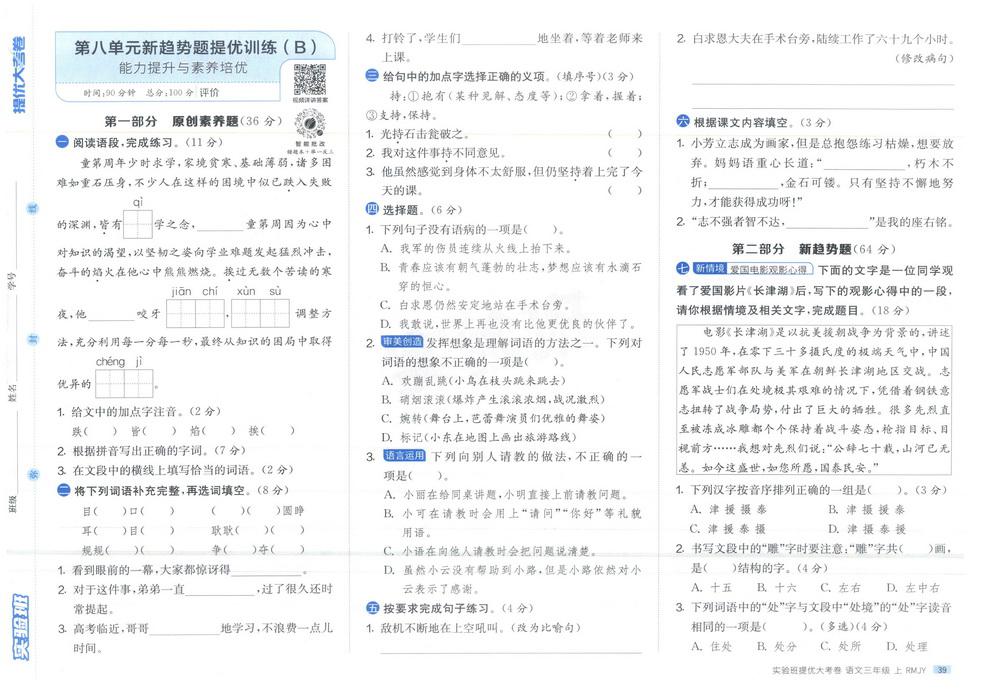 新教材人教版三年级上册语文第八单元测试卷三十video