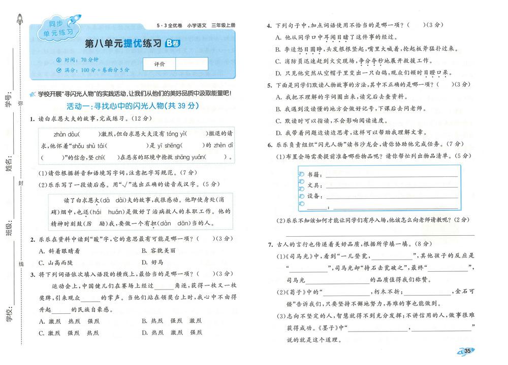 三年级 - 语文上试卷大全