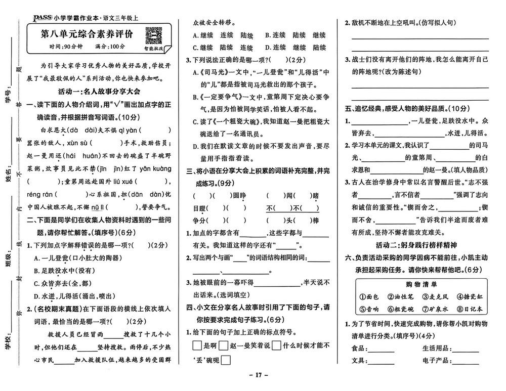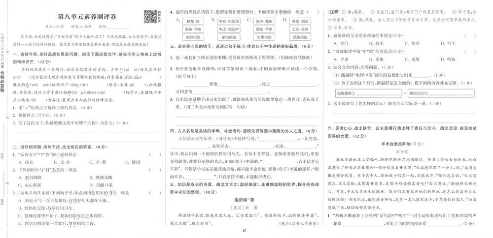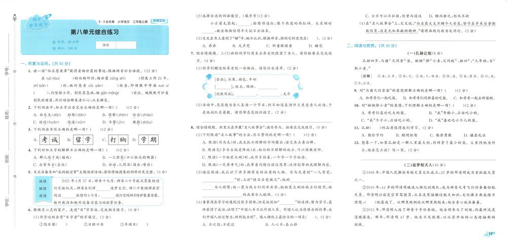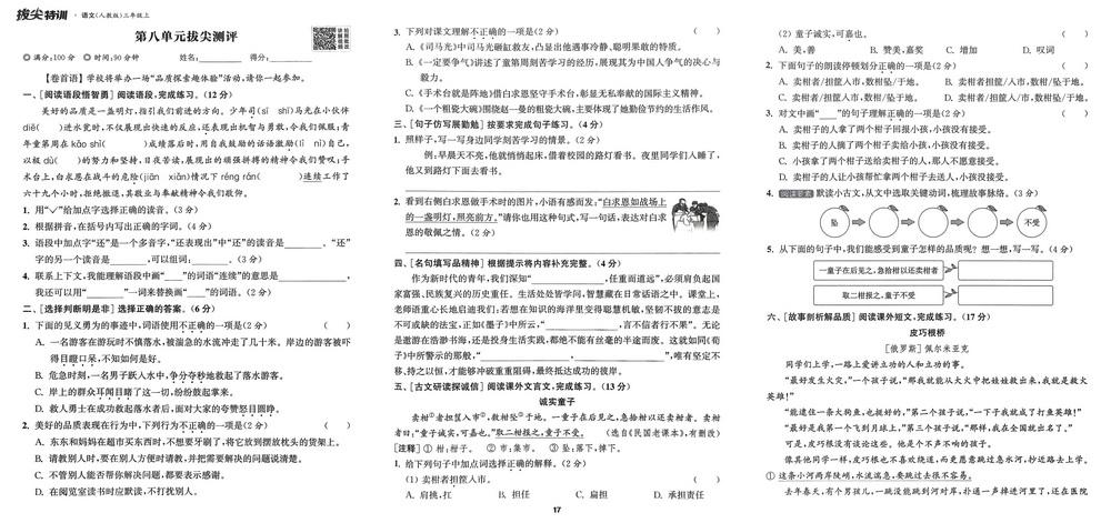 新教材人教版三年级上册语文第八单元测试卷十七video