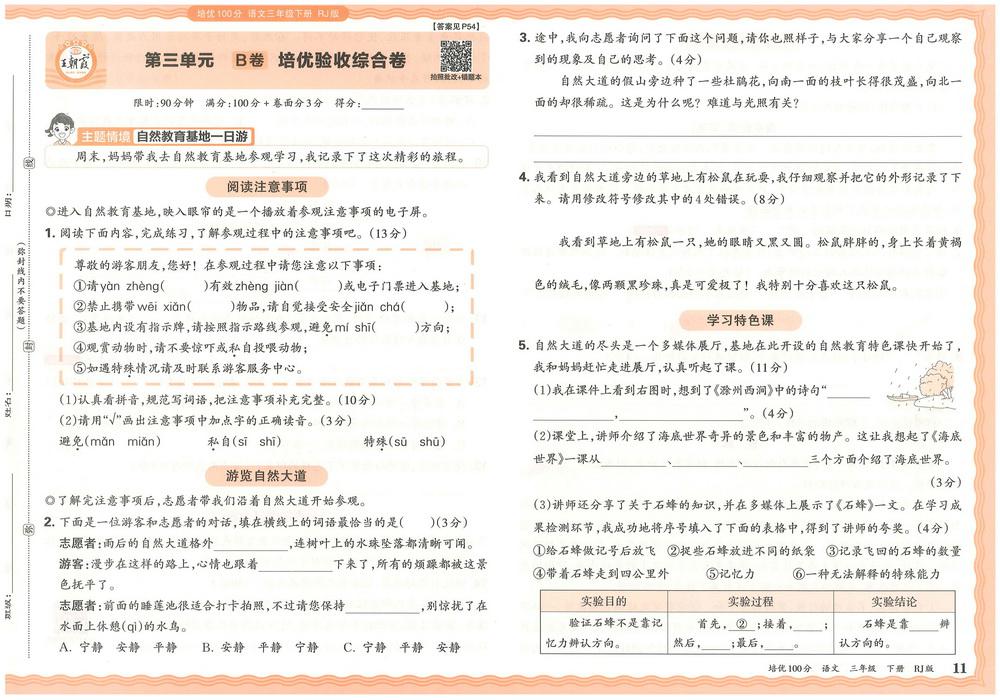 新教材人教版三年级下册语文第三单元测试卷五